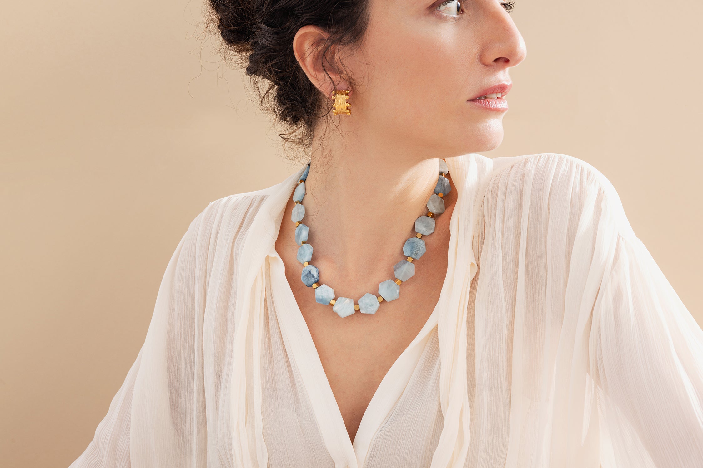 Ocean Bliss Necklace with Hexagonal Aquamarine
