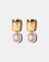 These Baroque Pearl Gold Stud Earrings exude timeless elegance. Featuring large baroque pearls suspended from gold-plated rectangular studs, they are a chic addition to any outfit.