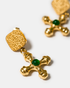Echoing the charm of ancient treasures, these stainless steel earrings feature a hammered stud and cross-shaped drop, finished with a vibrant green jade stone at the center—long celebrated for its connection to harmony and good fortune.