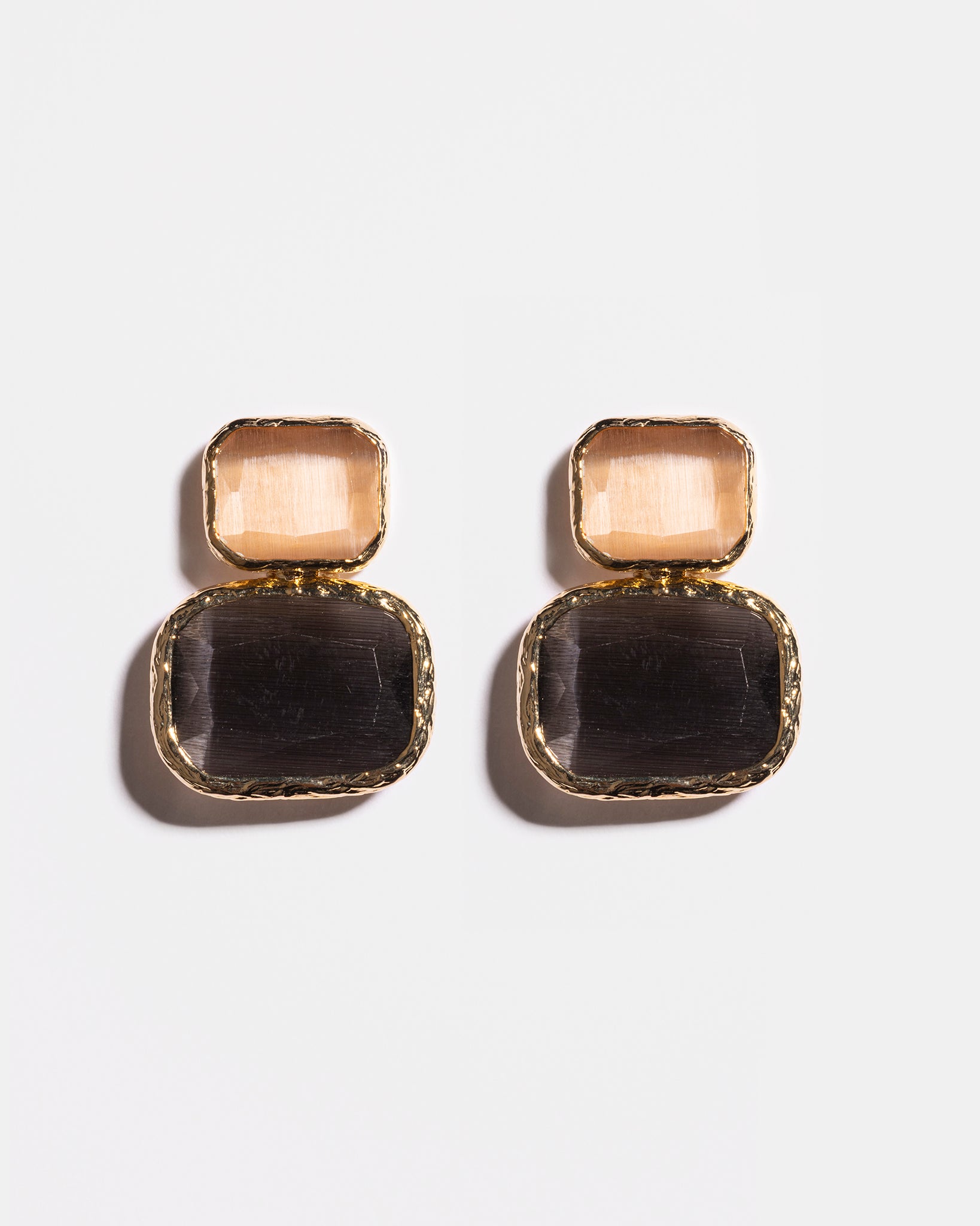 Gold Color Block Cat's Eye Earrings in Anthracite & Champagne