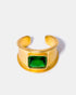 A modern take on a classic heirloom, this bold signet ring features a wide 18k gold-plated band set with a rectangular cubic zirconia. Its architectural form and vibrant stone bring a sense of strength and elegance, designed to be treasured for years to come.