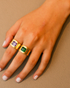 A modern take on a classic heirloom, this bold signet ring features a wide 18k gold-plated band set with a rectangular cubic zirconia. Its architectural form and vibrant stone bring a sense of strength and elegance, designed to be treasured for years to come.