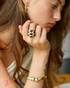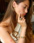 18k gold-plated brass, zircon stones (symbolizing clarity and harmony).