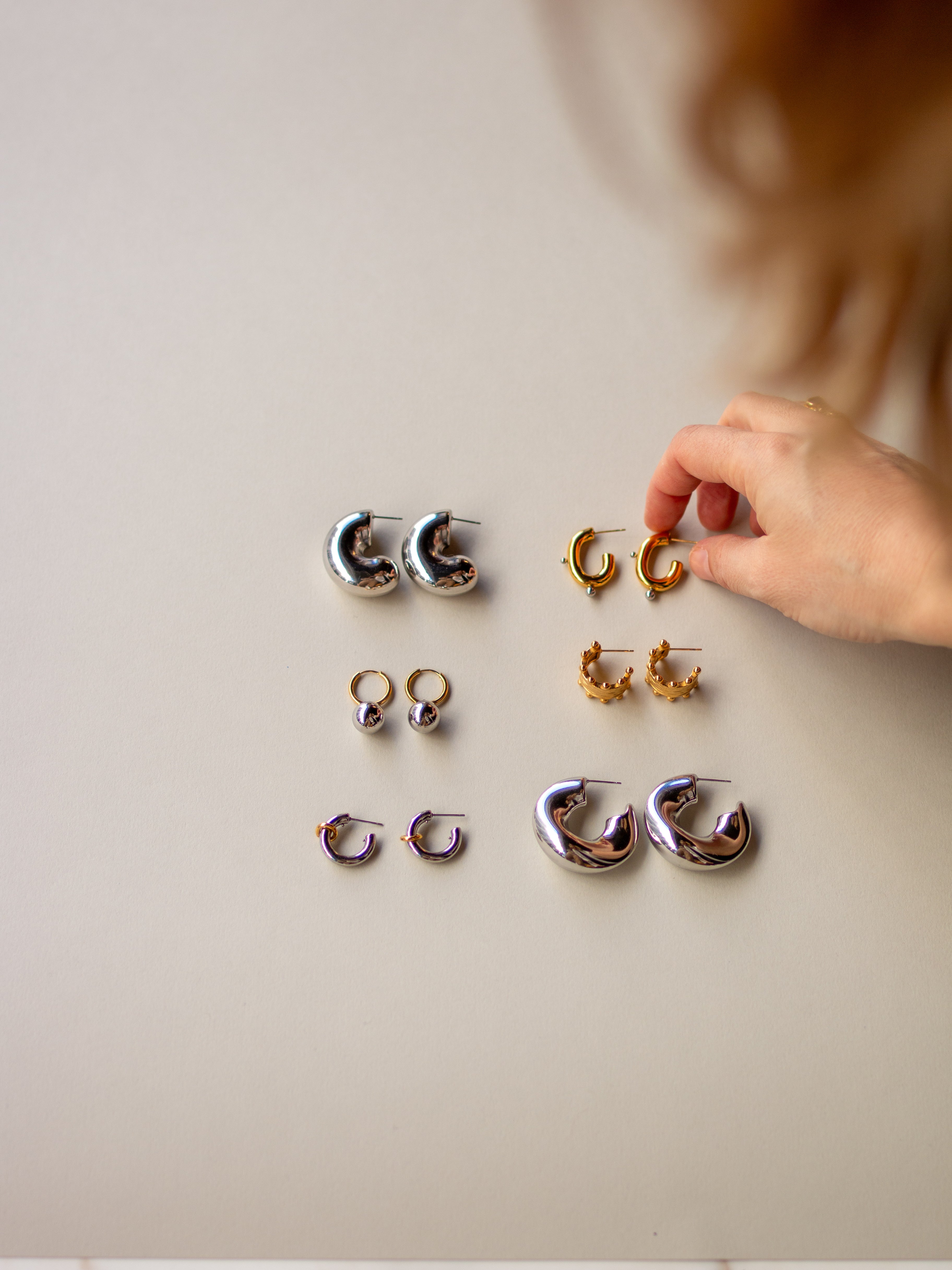 Mixed Ball Charm Hoops in Silver and Gold - Default Title