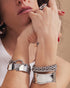 Infuse your look with effortless elegance through this twisted stainless steel cuff bracelet. The sleek metallic spheres and unique rope-textured band create a perfect balance of modernity and classic charm. Ideal for those who appreciate subtle yet impactful accessories, this bracelet enhances your everyday style with ease.