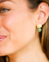 These gold-plated earrings feature a hammered square stud paired with a polished round Prehnite stone. With its soft green hue, Prehnite is celebrated as a stone of serenity and inner peace, believed to calm the mind and open the heart. A striking balance of texture and color, these earrings are perfect for both day and evening wear.