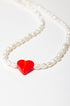 Playful yet elegant, this piece combines freshwater pearls with a bold red glass heart for a charming finish. It’s a love letter to summer—handmade to bring a pop of joy to your neckline.