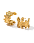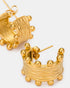 These gold hoop earrings, accented with crown-like textures, are a bold statement piece for the modern muse. Perfect for a polished look with a touch of uniqueness.