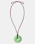 A soft green howlite pendant anchors this relaxed design—perfect for laid-back summer days. With a 5 cm circular form and a rich burgundy cord, it's calm, earthy, and effortlessly wearable.