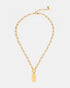 Carry the brilliance of the sun with the Sun Emblem Necklace in Gold. Featuring a finely etched 18k gold-plated rectangular pendant, this lightweight chain necklace exudes timeless elegance. Perfect for layering or as a solo statement piece.